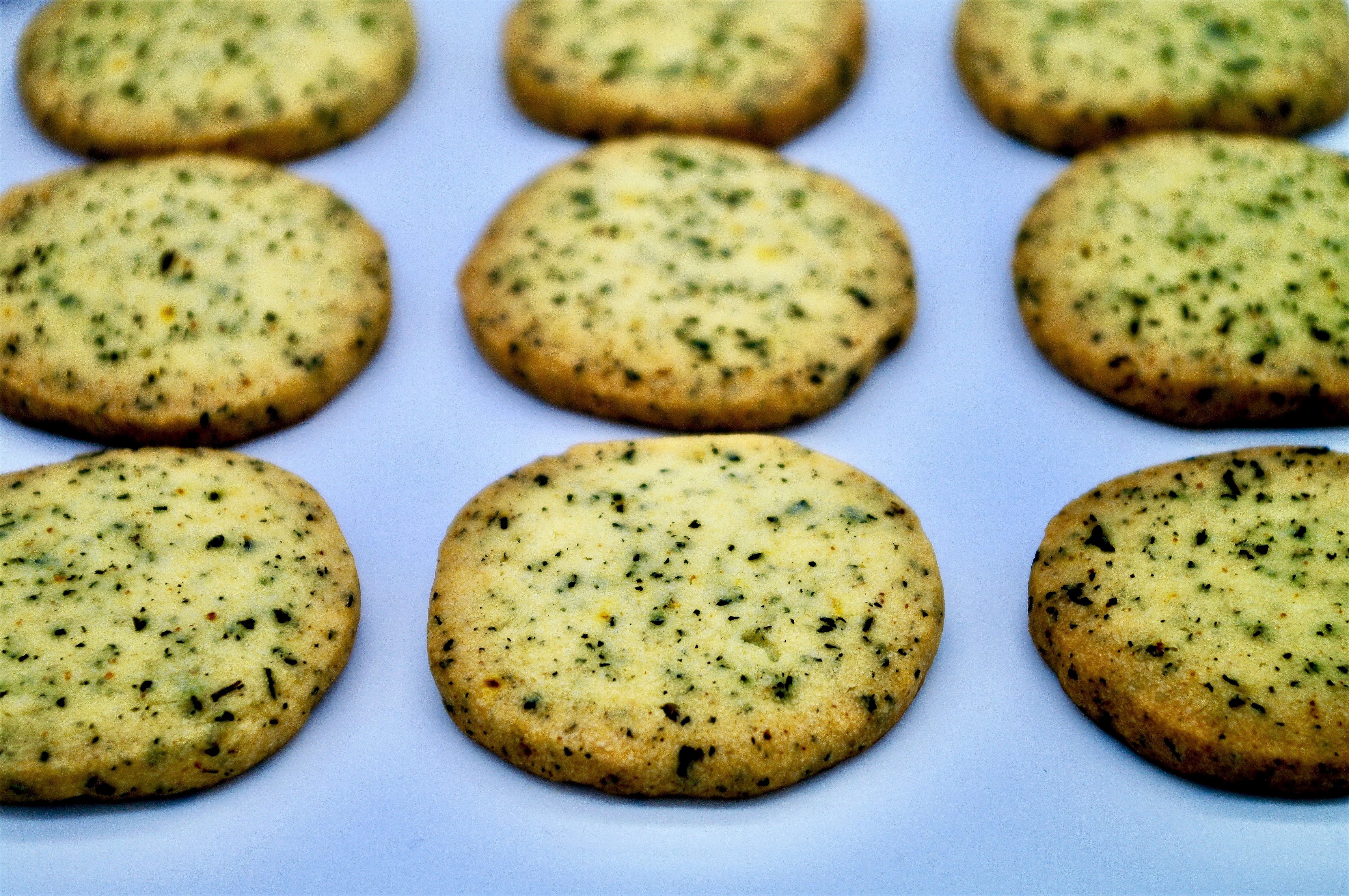 In una ciotola mescolare farina, sale, foglie di tè pestate in un mortaio. Nella ciotola della planetaria (o in una ciotola normale se lo fate col frullino elettrico) sbattere a media velocità il burro MORBIDO con lo zucchero a velo e la scorza grattata dell’arancia, per 3′, ottenendo un composto chiaro e soffice. Ridurre la velocità al minimo ed inserire la miscela di farina a cucchiaiate. Dividere l’impasto a metà e trasferirlo su due pezzi di carta forno, modellando un rotolo arrotolato nella carta stessa. Disporre i due rotoli ottenuti in congelatore per 1h (possono starci anche dei giorni, se volete prepararli con largo anticipo per ogni necessità). Tagliare ogni rotolo a fette di 5mm di spessore con un coltello affilato, disporre i biscotti su teglie foderate di carta forno e cuocere in forno statico preriscaldato a 180° per 13-15′: i bordi devono essere dorati, mentre il centro sarà più pallido. A metà cottura girare la teglia per permettere una cottura uniforme. Far raffreddare bene su una gratella prima di gustare. Si conservano in una scatola di latta e mantengono la loro fragranza per qualche giorno. ENJOY!