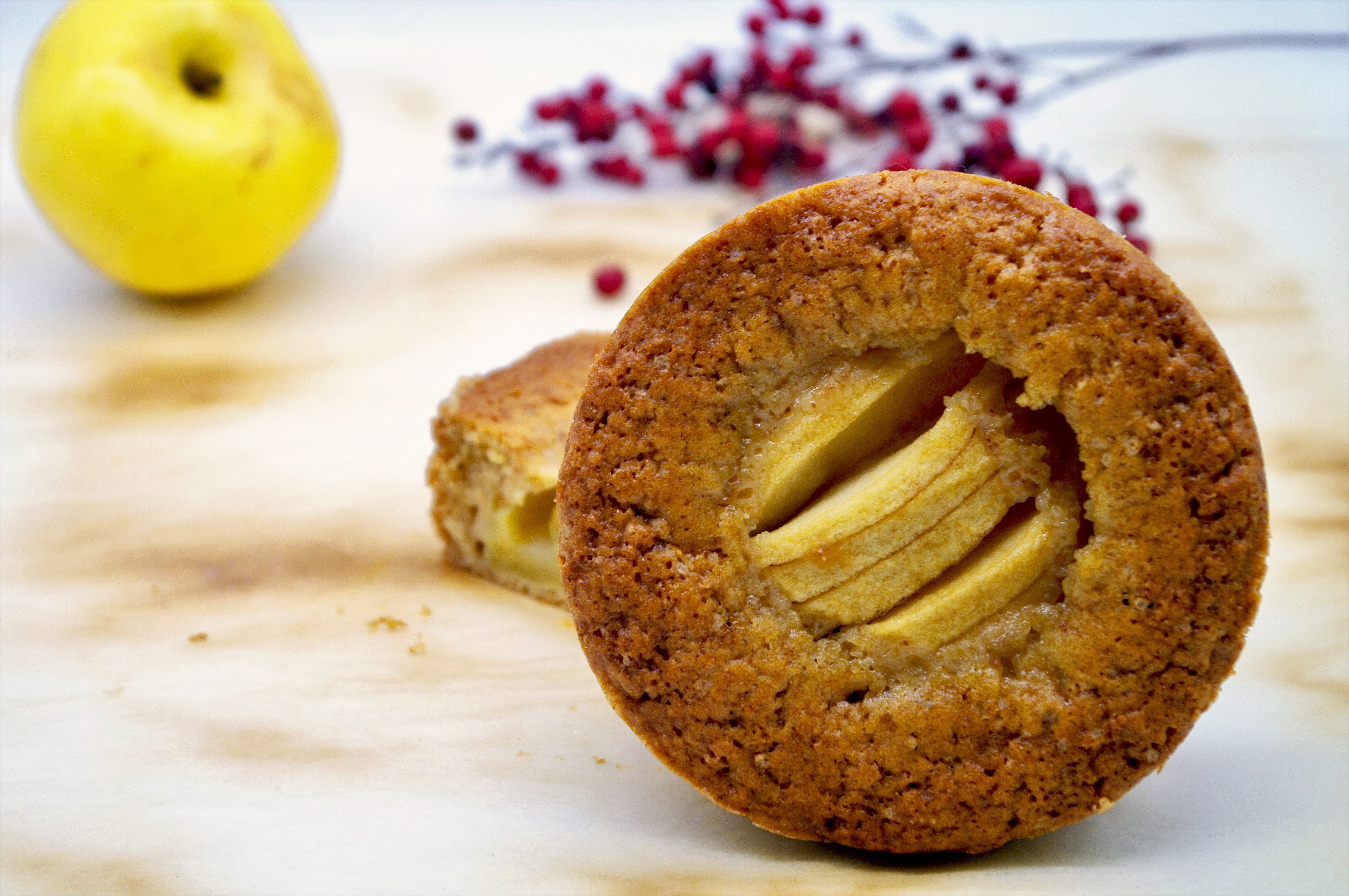 Da tempo volevo fare una torta di mele per il blog, ma non ho mai avuto l’ispirazione giusta. Poi mi è venuta l’idea di tortine monoporzione con amaretti tritati nell’impasto, da abbinare alle buonissime mele della nostra campagna. L’impasto si fa in un lampo, è uno di quelli versa tutto e mescola; la mezza mela occupa tutto lo spazio centrale, di modo da essere abbondantemente presente ad ogni morso. Soffici e golose, sono i dolcetti ideali per la colazione o la merenda. Chiaramente è possibile fare anche una torta unica, da tagliare a fette: questa dose è perfetta per una torta da 20cm di diametro. A voi la scelta, ma il monoporzione è così terribilmente caruccio!