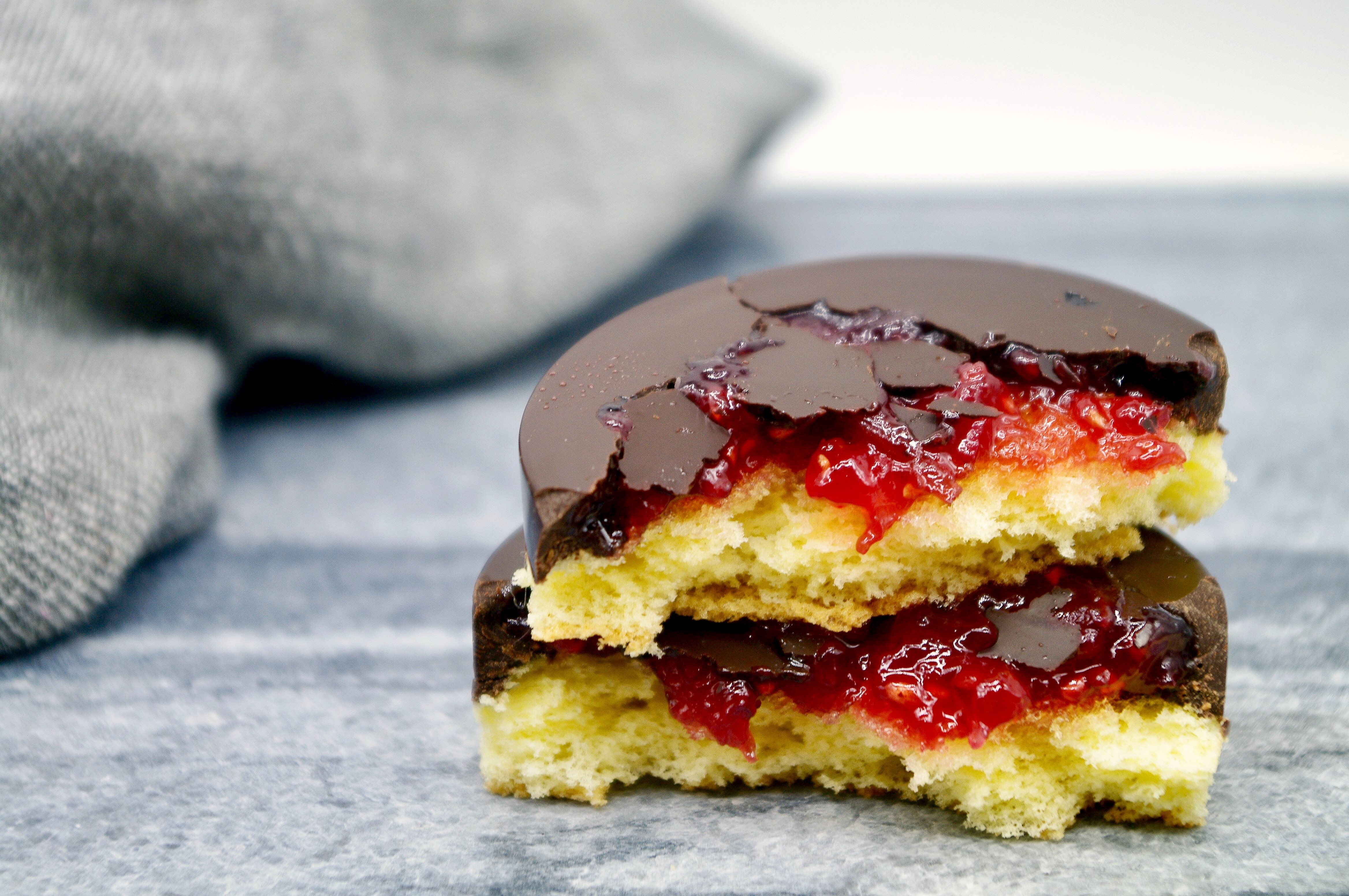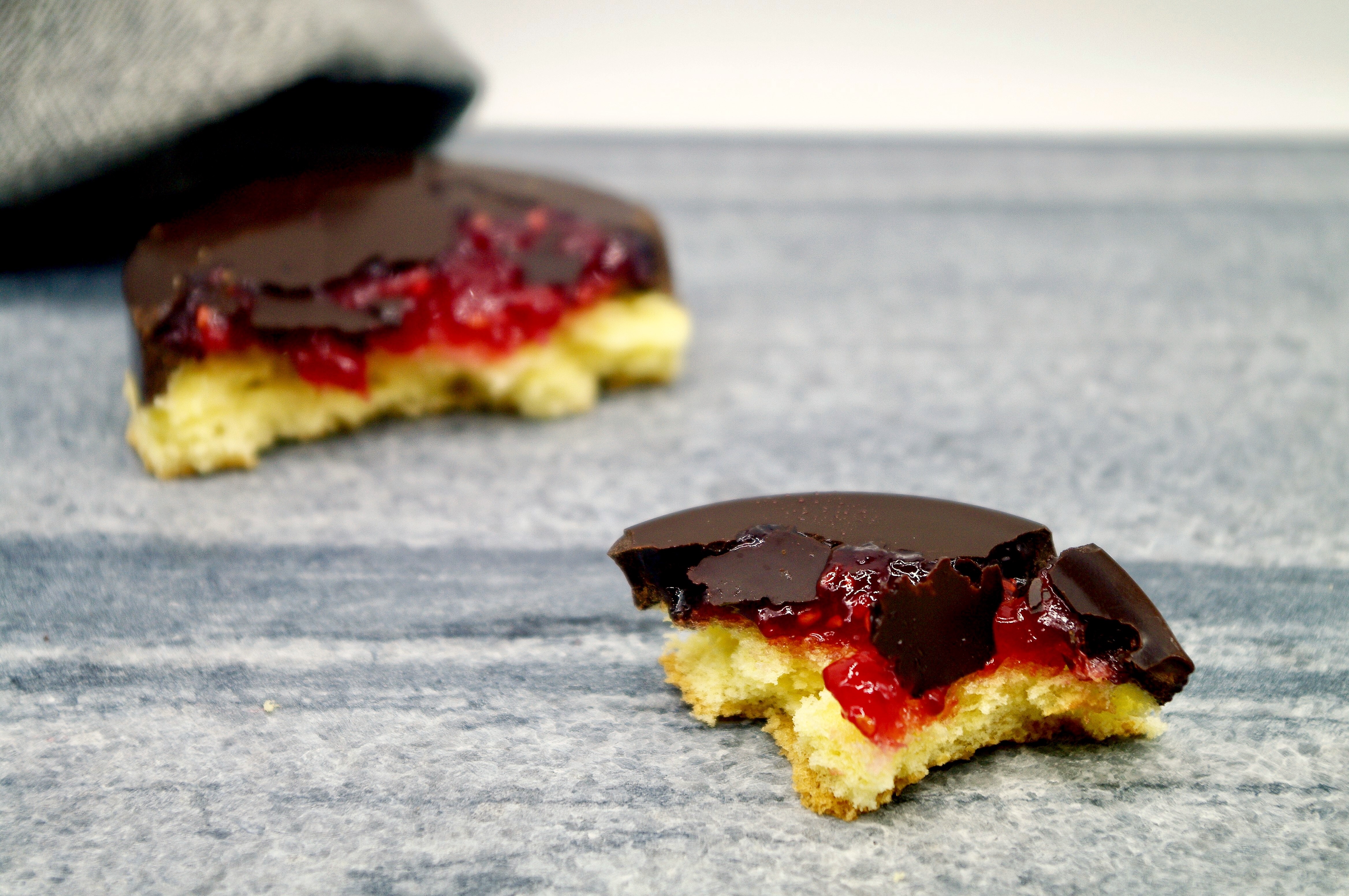 Un dolcetto davvero accattivante, con giochi di colori e consistenze. La dolce sofficità del Pan di Spagna si scontra con l’amara croccantezza del cioccolato extra-fondente, col morbido intermezzo acidulo della confettura di lamponi. Sono perfetti per i buffet o le merende in compagnia e piaceranno davvero a tutti.