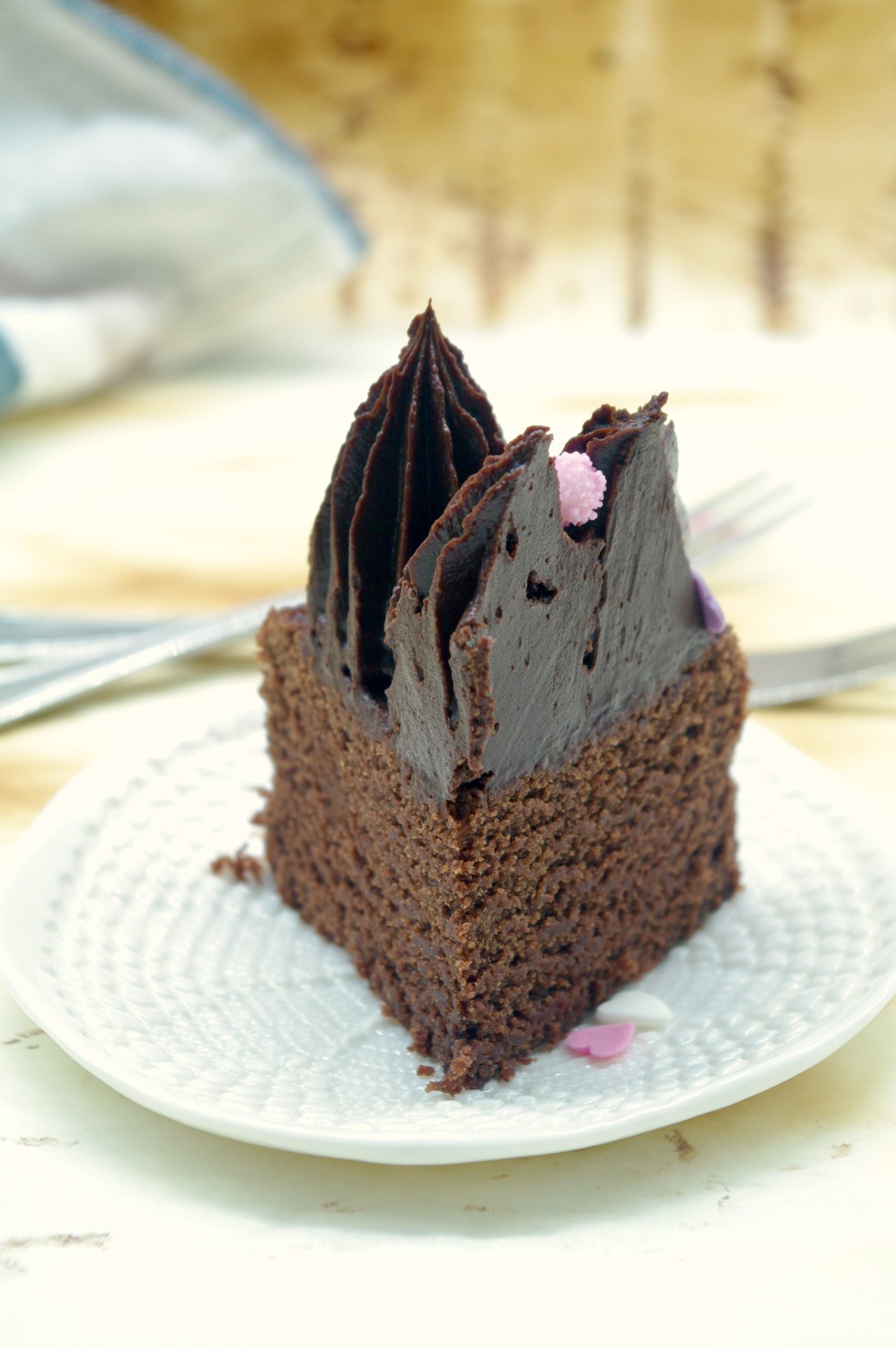 HOT WATER CHOCOLATE CAKE WITH EXTRA-DARK CHOCOLATE GANACHE