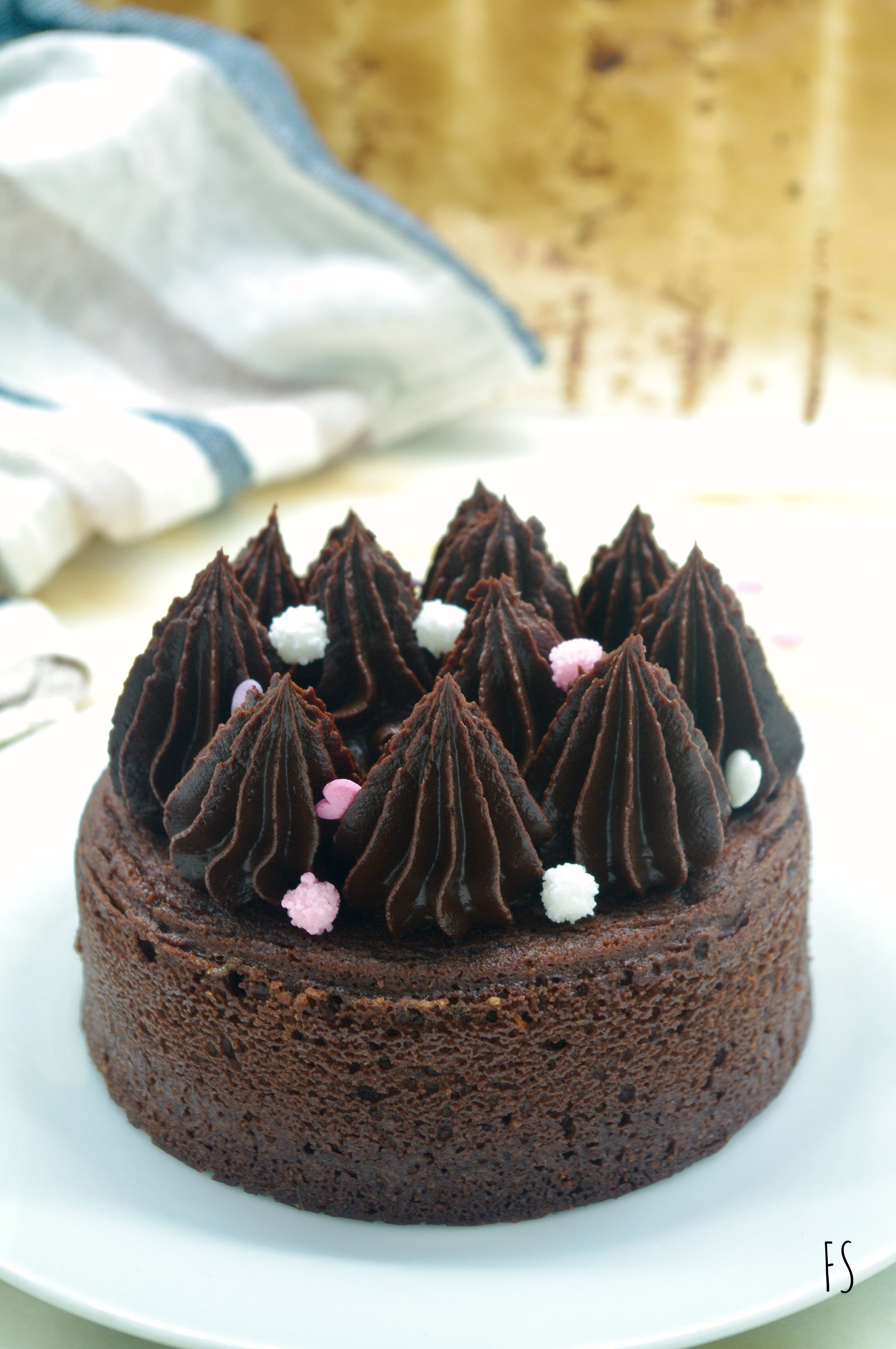 Una gustosissima tortina, sofficissima e senza uova, con acqua calda nell’impasto e una deliziosa ganache al cioccolato fondente come decorazione. Perfetta per i veri amanti del cioccolato, come torta di compleanno, come merenda gustosa, come dolcetto per un pranzo in compagnia, Pasqua compresa. FACILISSIMA da fare, scenografica, scioglievole, conquisterà tutti al primo morso. L’utilizzo dell’acqua calda nella preparazione delle torte l’ho scoperto ancora tanti anni fa e, ad intervalli regolari, mi torna in mente: la ricetta di questa base, nello specifico, è di Stephanie Jaworski, che io seguo fedelmente tranne che nei dosaggi dello zucchero (ah, questi americani).