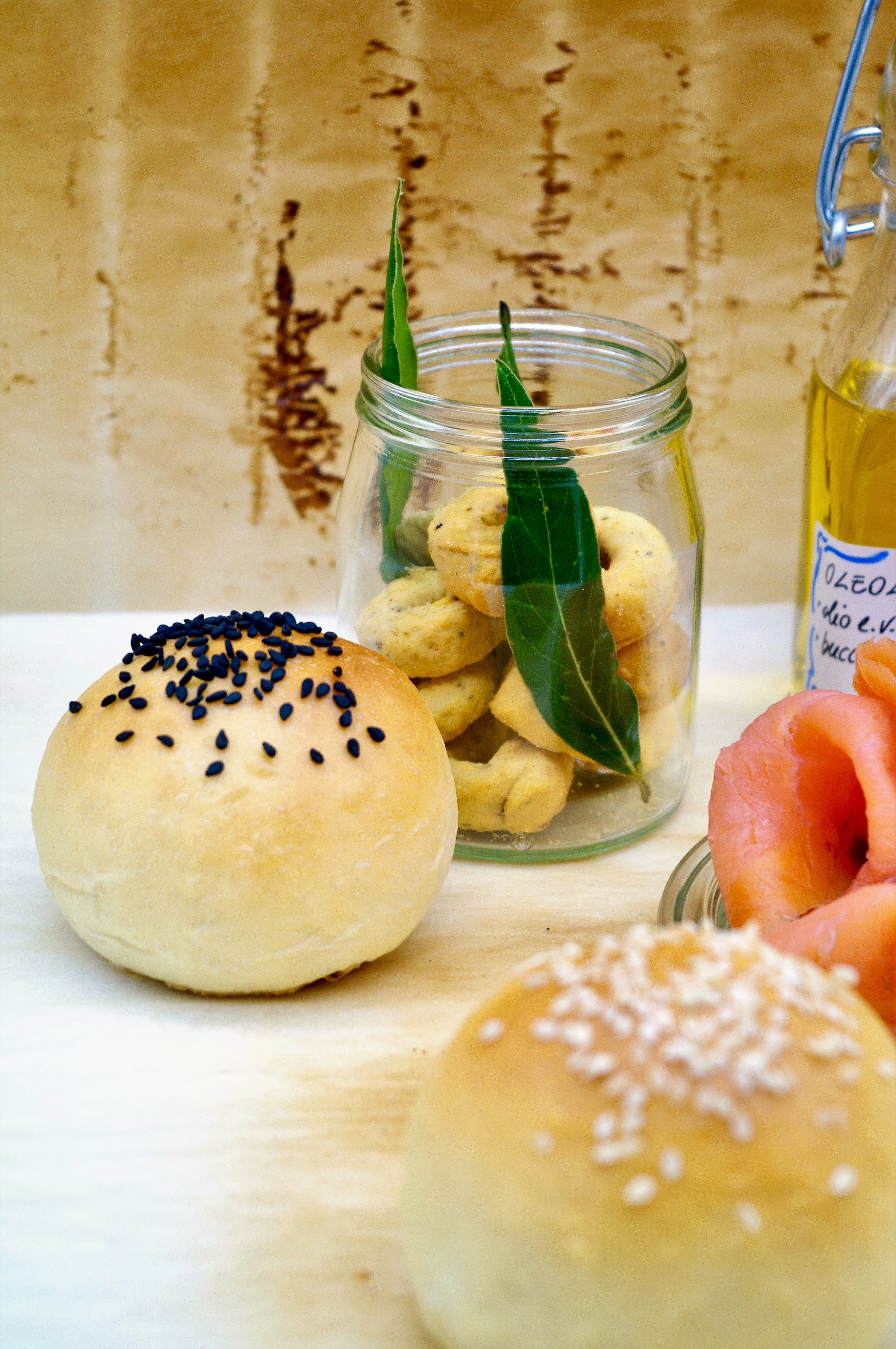 Brush the surface of the balls with a dash of milk and garnish (if you want) with the seeds. Cook one pan at a time in the preheated oven at 200° for 10-12′: they must be golden on the surface, but light. Allow to cool well on a wire rack before filling and serve. ENJOY!