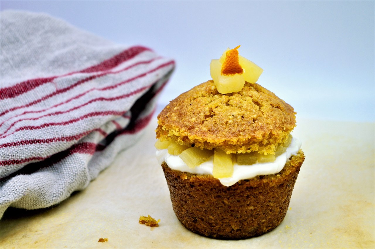 CARROT AND HAZELNUT CUPCAKES WITH YOGURT CREAM AND PINEAPPLE