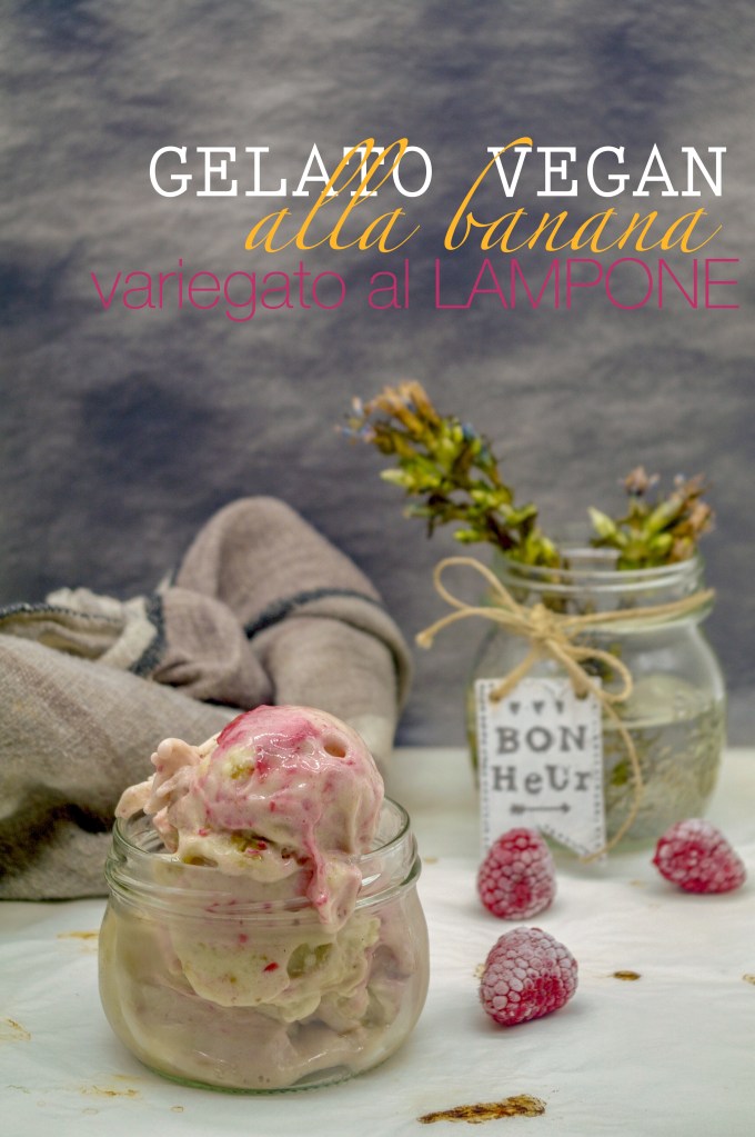 Once frozen, take the fruit out of the freezer and leave it at room temperature for 10-15′, for the ice crystals to melt. Place banana in a bowl with the protein powder (if you use it) and blend with the immersion blender, turning it off several times and starting again. Obtained a creamy but firm consistency, add the raspberries and blend only a few seconds, creating swirls with the immersion blender, without giving homogeneity to your nicecream.