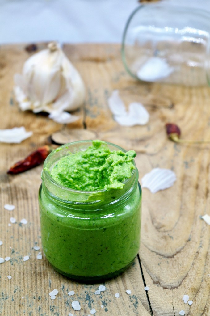 Il colore di questo pesto è esattamente come si vede in foto: verde acceso ed invitante.