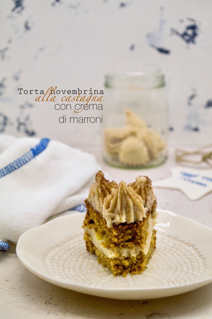 Fra la frutta tipica di questo periodo, ho optato per le castagne, sia nella base della torta (come farina di castagne) che nella crema (come purea di marroni). Interessante la nota dell’arancia, che dona un tocco agrumato che si sposa alla perfezione con la castagna.