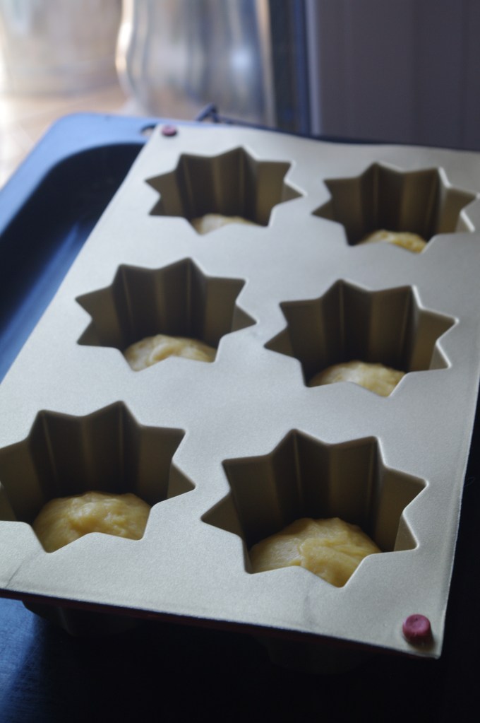 Take the dough, weigh it and divide it in pieces, 50g each (with this dose you will get 9 pieces). Give each piece the shape of a ball, then insert the balls into the grooves of the molds (150mL silicone molds, like these), with the closure facing upwards: it is not necessary to butter the molds, because the silicone it will allow you to unmold your sweets anyway, but if you like it, as a matter of taste, you can do it. Cover with plastic wrap and let rise until the pandoro domes exceed the level of the molds.