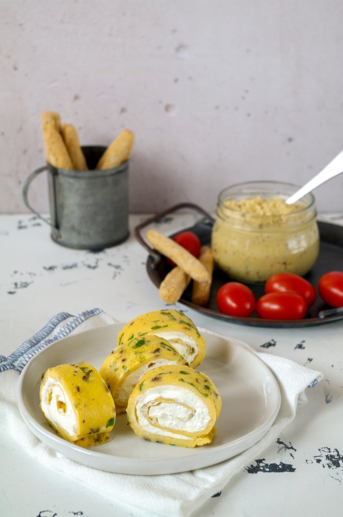 STUFFED omelette roll, chickpea hummus and cherry tomatoes | ZONE DIET