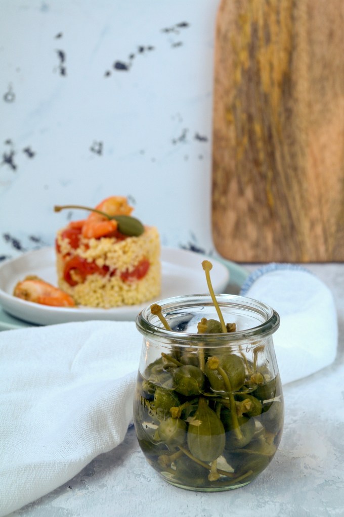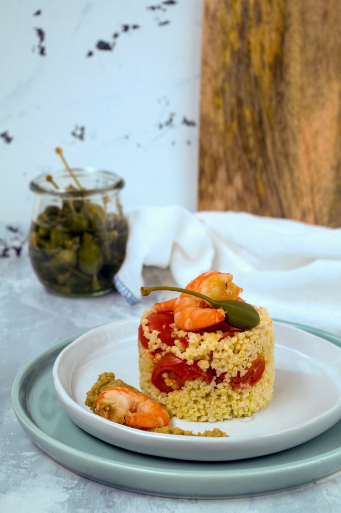 MILLET WITH PRAWNS, OLIVE PATE AND CAPER FLOWER | ZONE DIET