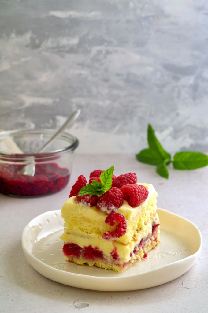 MAY SOFT CAKE WITH DIPLOMAT CREAM AND RASPBERRIES