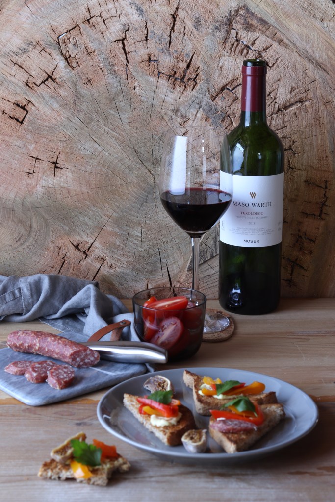 Il vino perfetto: io ho abbinato un Teroldego del Trentino-Alto Adige, che con le sue note fruttate e non troppo impegnative esalta il piatto senza dominarlo.