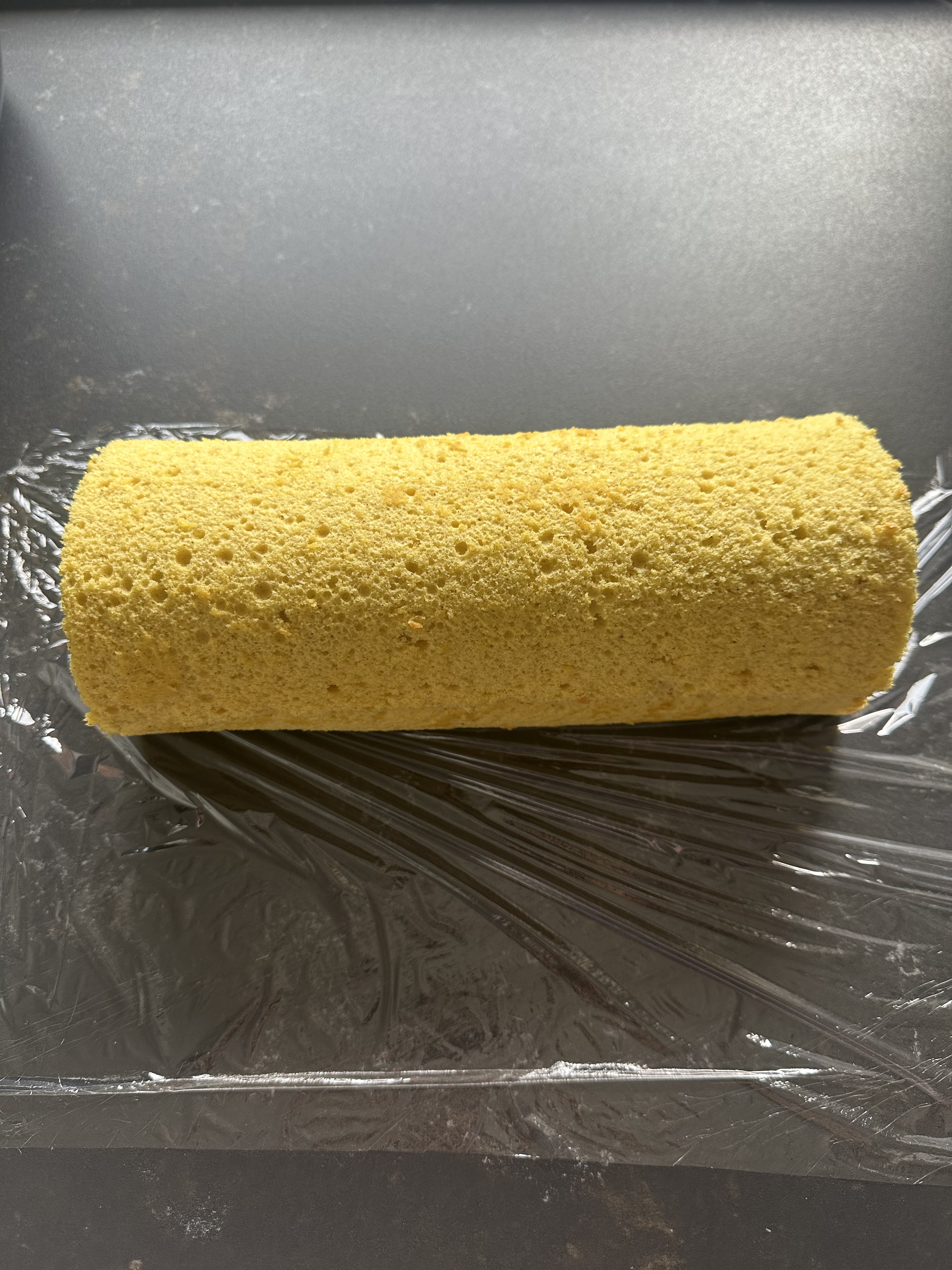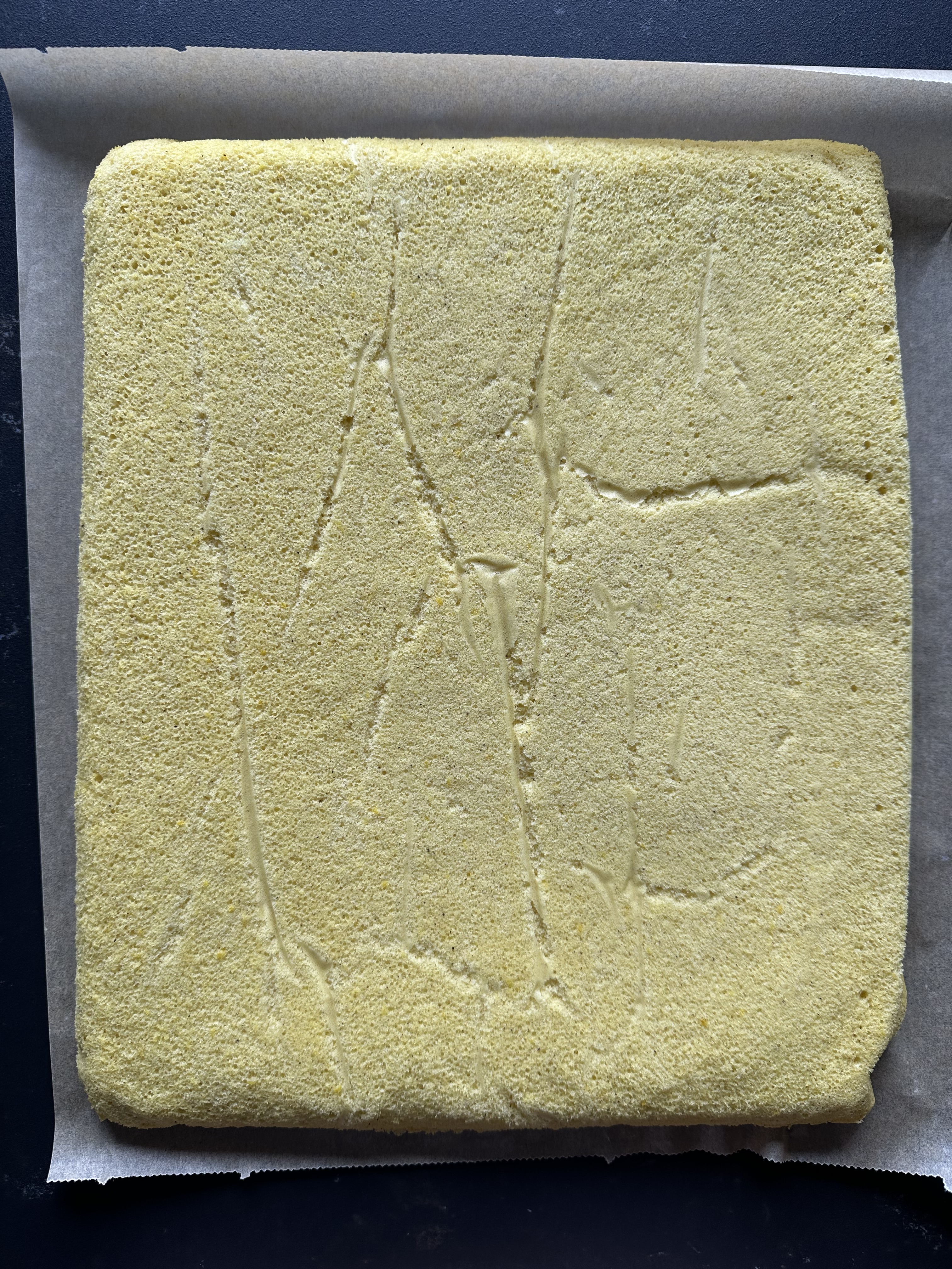 Per la pasta biscotto: in una ciotola setacciare farina, amido di mais, lievito e sale. Dividere i tuorli dagli albumi e montare questi ultimi con le fruste elettriche: quando saranno sbianchiti e pieni di bolle aggiungere 50 g di zucchero e finire di montare a neve (foto 1). Montare i tuorli in una ciotola separata insieme ai restanti 50 g di zucchero, olio di semi, vaniglia e limone, fino a quando diventeranno chiari e spumosi (foto 2). Aggiungere gli albumi montati al composto di tuorli (foto 3), in tre volte, alternando ogni aggiunta con le polveri setacciate, mescolando con una spatola in modo delicato dal basso verso l’alto (foto 4). Versare in una teglia da forno (25×35 cm) rivestita con carta forno, distribuendo bene in uno spessore uniforme. Battere la teglia due volte sul piano di lavoro per eliminare le bolle più grosse (foto 5), quindi cuocere in forno statico preriscaldato a 175°C per 10-15′: la superficie sarà moderatamente dorata. Sfornare, attendere 10′ quindi girare la pasta su un foglio di carta forno pulito, rimuovere la carta forno della cottura (foto 6), rifilare bene i bordi e arrotolare con delicatezza partendo dal lato corto. Far raffreddare con la chiusura sotto (foto 7).