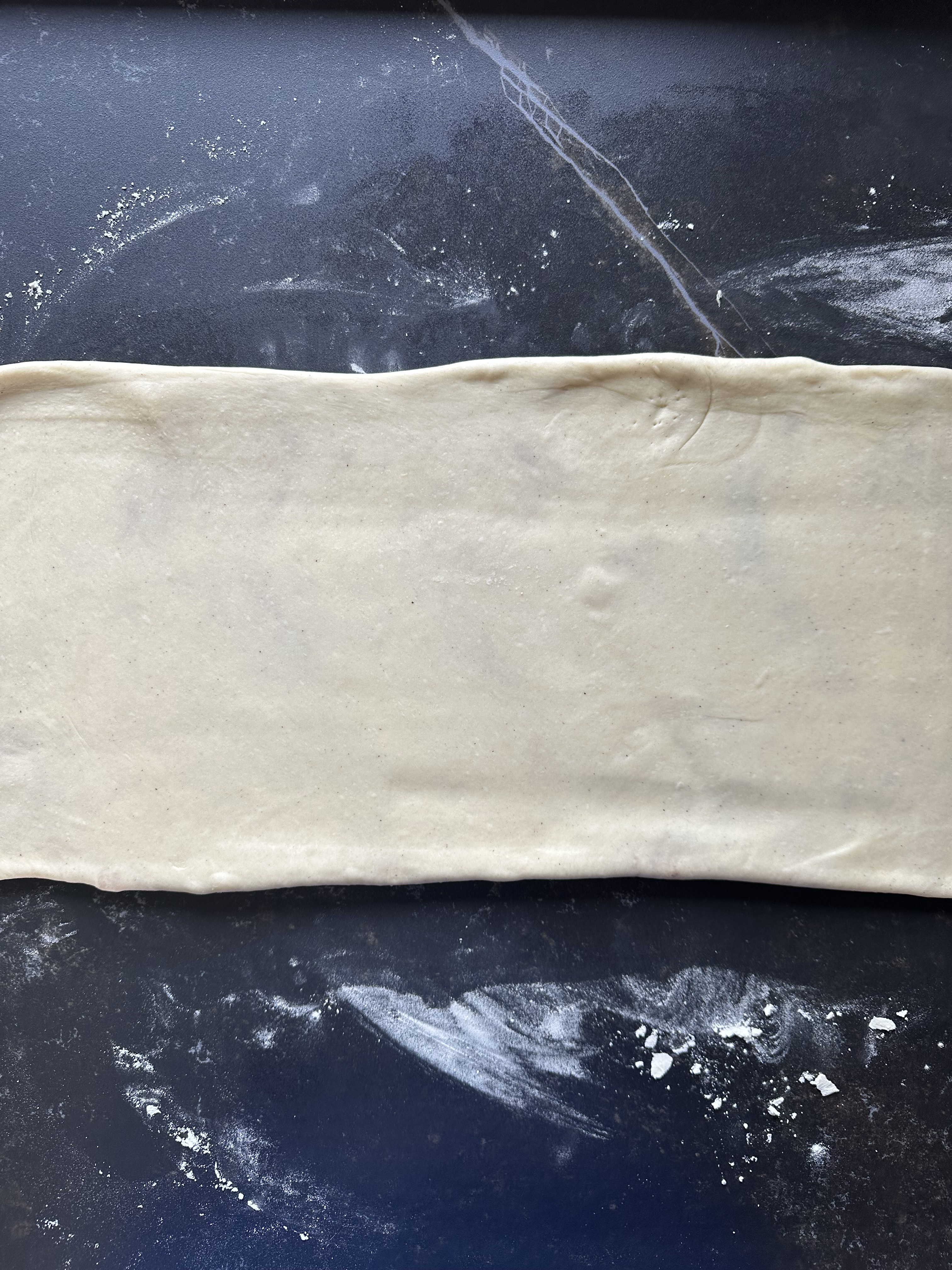 Per l’impasto: intiepidire il latte e scioglierci il lievito. Versare tutto nella ciotola della planetaria, insieme al resto degli ingredienti, tutti insieme (accertarsi che il burro sia morbido, consistenza spalmabile). Impastare prima a velocità bassa per circa 5′, quindi, una volta ottenuto un impasto grossolano, proseguire a media velocità ed impastare per circa 20′: l’impasto deve risultare perfettamente liscio, omogeneo, setoso e ben attorcigliato attorno al gancio. Potete effettuare la prova del velo, ossia prendendo un pezzo di impasto fra le mani e stirandolo fra le dita, esso deve tendersi fino a diventare quasi trasparente, senza strapparsi: se così non fosse, proseguite ad impastare per altri 5′. Dare all’impasto la forma di un rettangolo, ricoprirlo con pellicola e spostare in frigorifero per 1 h.