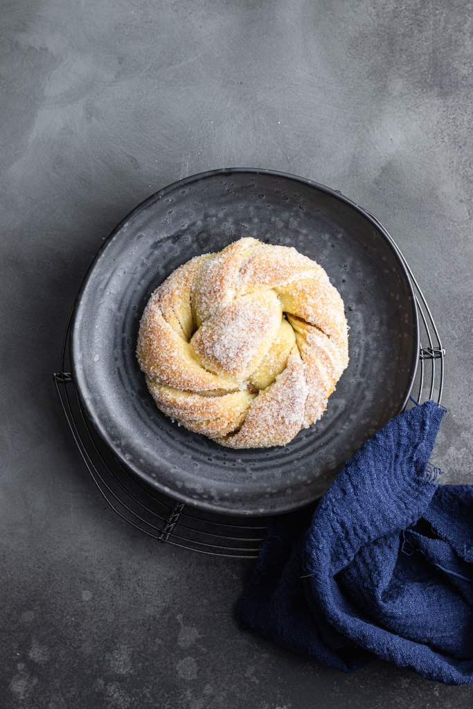 Una brioche squisita, soffice, corposa, con la croccantezza dello zucchero in superficie e l’aroma della cannella al suo interno. L’ispirazione viene da Cecilia Tolone, pasticciera svedese.