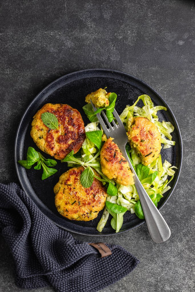 Prelevare delle porzioni di impasto, dandoci forma tonda, come canederli classici (per farlo potete inumidire le mani con acqua fredda, prima di toccare l’impasto). Schiacciare ogni canederlo, dandoci la forma di un medaglione. Otterrete 10 canederli pressati.