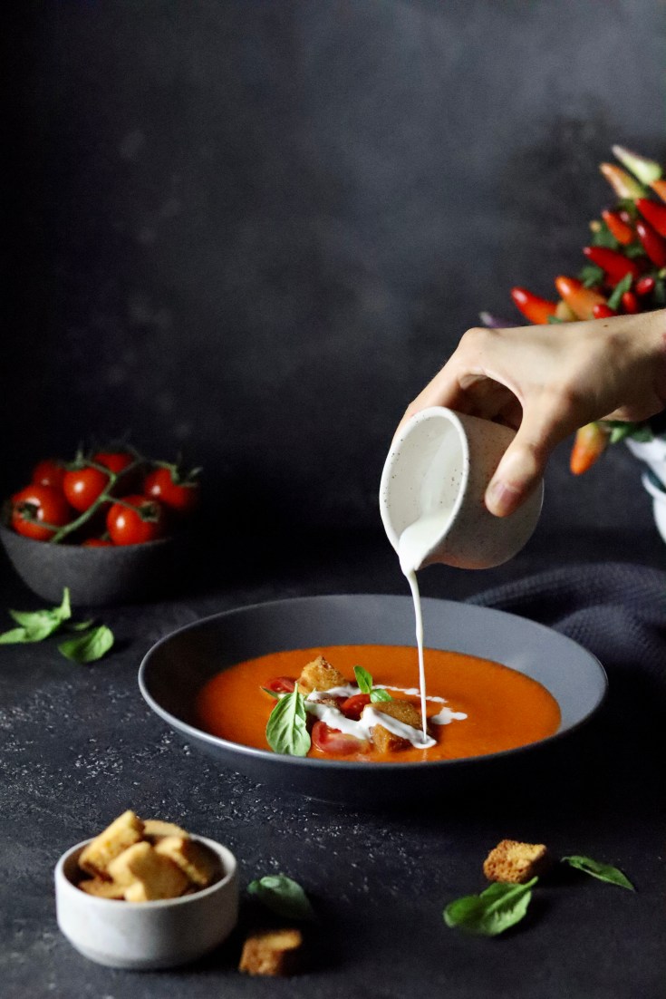 Gazpacho tiepido con crema di panna acida